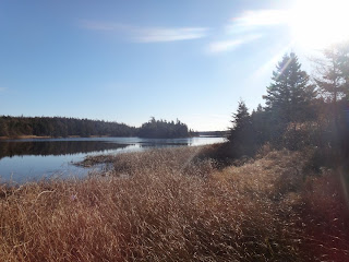 stunning late morning on the atlantic ocean - i have to climb the top of that cliff to the right for the cranberries, so i am told..
