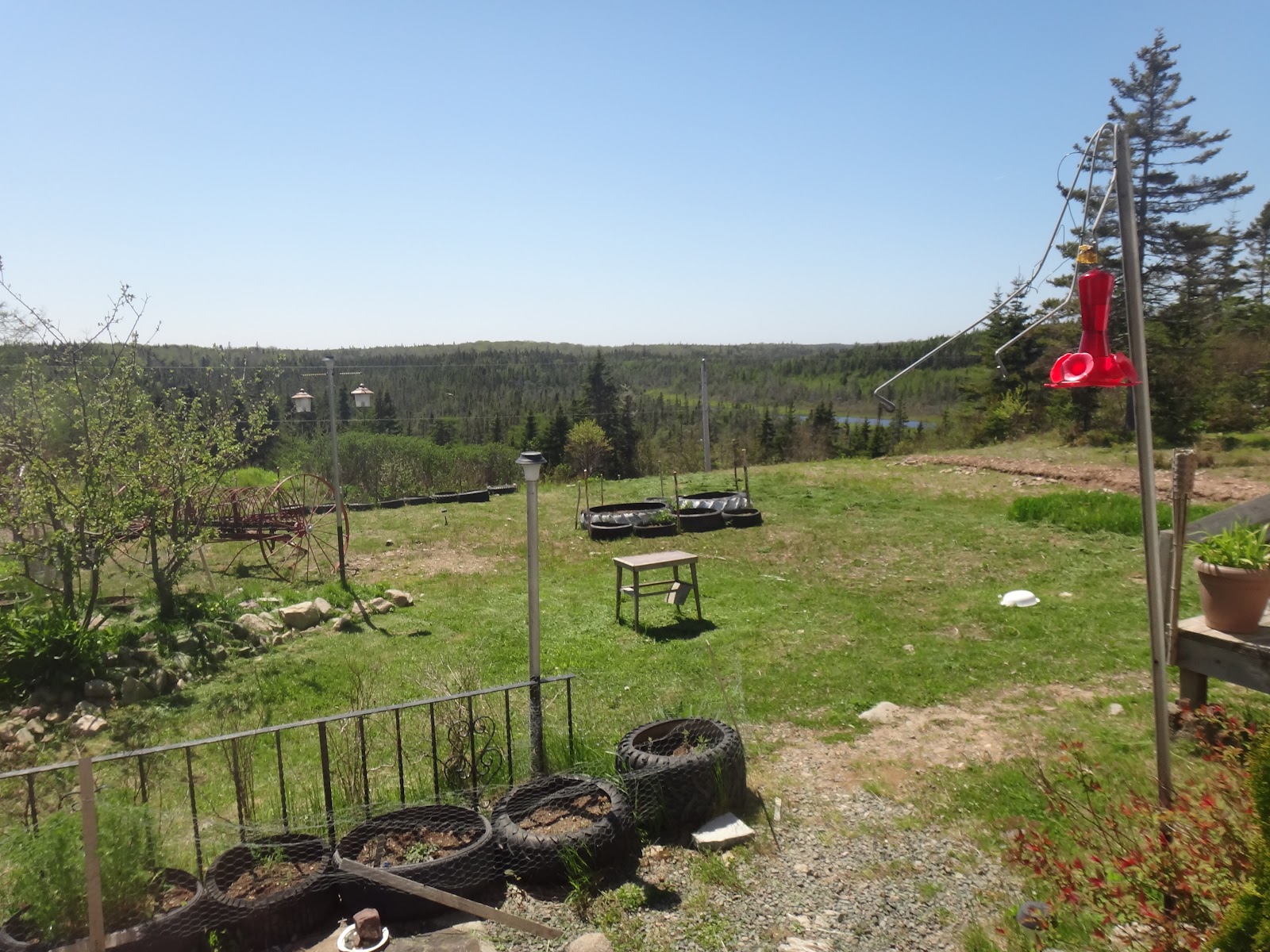 what has jambaloney been up to, you ask? good question. he's been out weed-whacking. i must admit that the yard was getting pretty overgrown. it's not all green yet but it soon will be. take a look at the beautiful blue of Strachan's Brook.